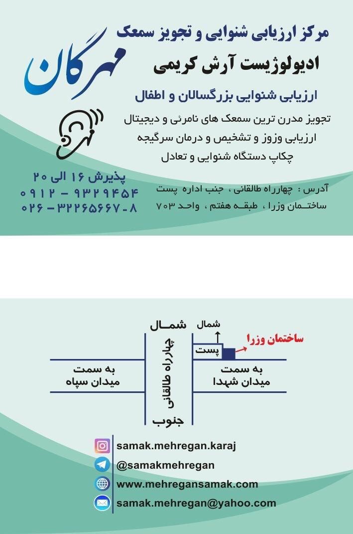 کرج، ،چهارراه طالقانی،جنب اداره پست ساختمان پزشکان وزرا،طبقه ۷،واحد۷۰۳