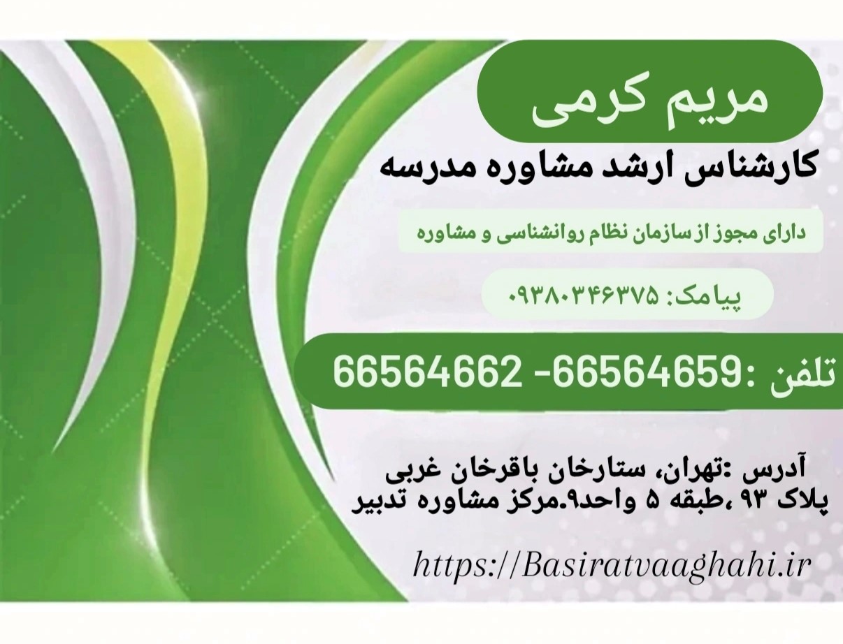 تهران ، ستارخان باقرخان غربی پلاک ۹۳ ،طبقه ۵ واحد۹.مرکز مشاوره تدبیر